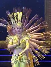 在观音舞蹈中,舞者通常会通过以下几种动作来表现观音菩萨的形象: